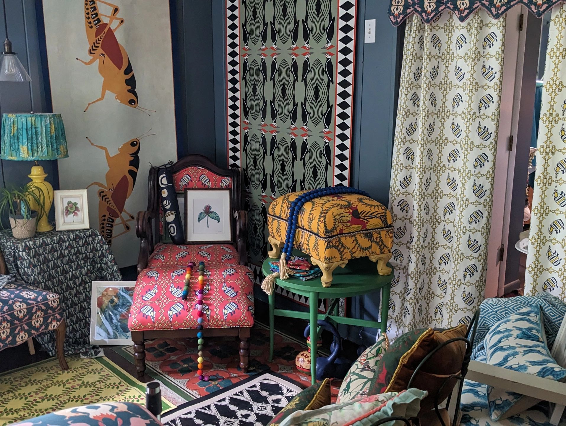 I took December to enjoy the holidays with my family -- I only get one trip around the sun, and I wanted to be thoroughly present for my family after the busy months of October and November. My boys are growing up in a flash, and will be out of the nest soon, which makes me cling to these sweet holiday moments with them even more! In the second week of January, I had eye surgery, and I just can't wait to see and get back at it again. The recovery process is slower than I'd like, and I have a full lineup of incredible projects for the New Year, so I am more than a little bit antsy! Before surgery, I did recover this sweet little bench, with my Hummingbird and Datura fabric, and worked on some of my new designs for 2024. Happy New Year, and I can't wait to share it all with you!