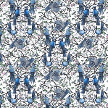 I am having a moment, trying to figure out the difference between pattern and design. For A.R.T., I will use design to refer to the application of the pattern. I think. Anyway, I have been working on some new patterns, and here is one of the finished additions -- Bluejay Blueberry. I plan to come up with a whole line of patterns connecting our garden fruits and vegetables to the wildlife we grow it for (ehhem).