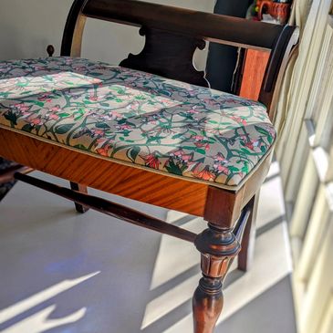 I love to make beautiful cushions and reupholster small furniture pieces with my fabrics! Thoughtful pattern placement and attention to detail are incredibly important to me. I am constantly developing my skills, and would also be happy to help you find a specialized craftsperson who can apply my fabric designs to your furniture, home decor, and window treatments.