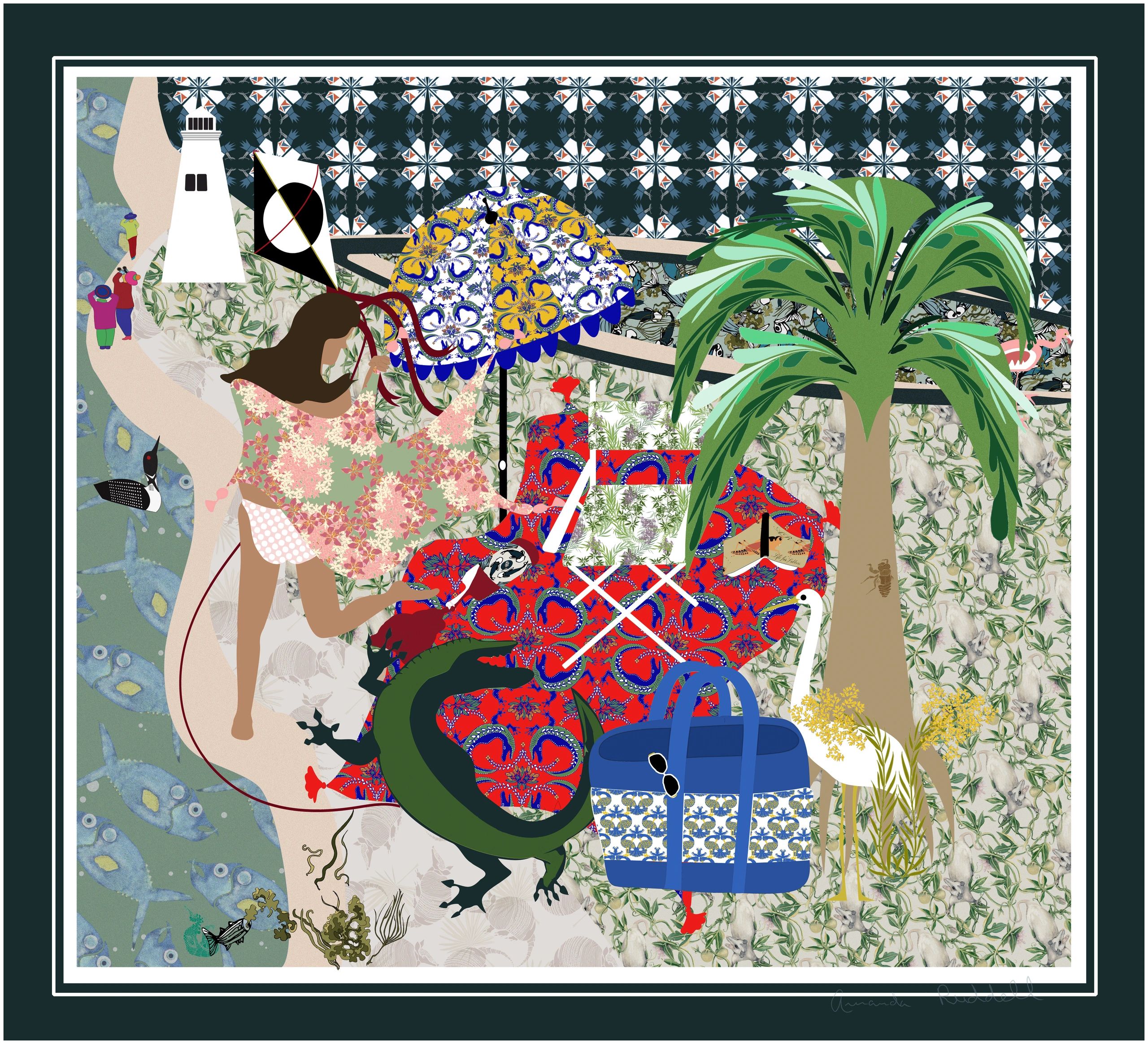 I love the outcome so much, that I have decided to make this part of my regular process. I have a list of contenders for the next collage -- a different vignette, different setting, in real and figurative forms, featuring different A.R.T. textile designs. I am looking forward to sharing the process with you!